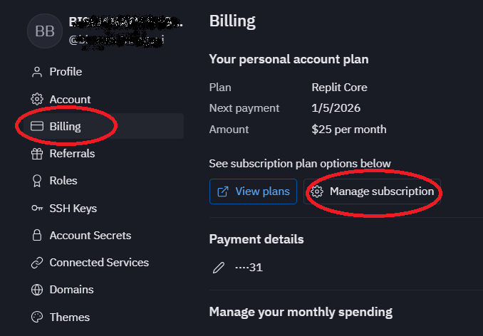 Replit subscriptions are managed through the web dashboard, even if you use Replit on mobile.